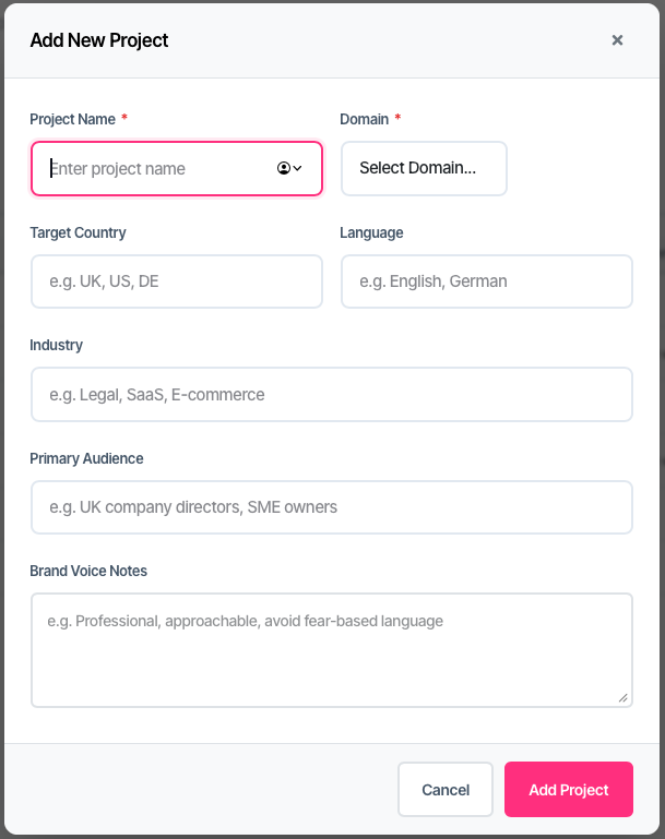 | AI recommendations feel generic | Edit the project and add Primary Audience and Brand Voice Notes |