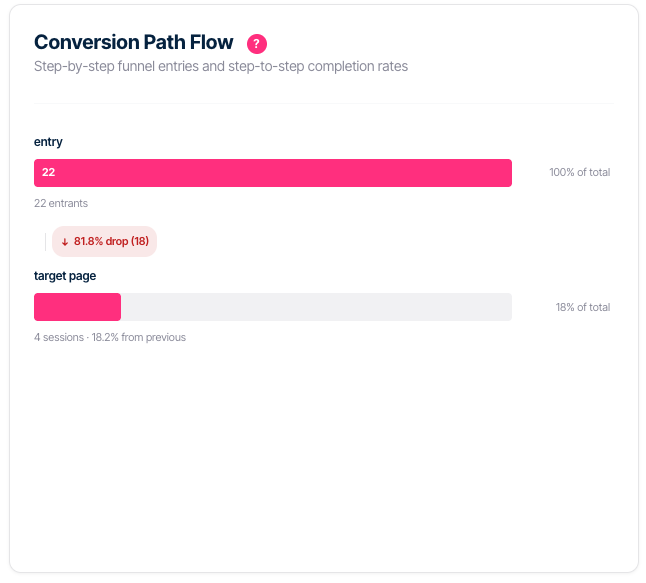| Entrants (step 1 only) | Unique visitors who entered the path at this step |