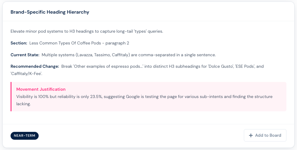 • Movement Justification — why this change addresses the observed ranking pattern