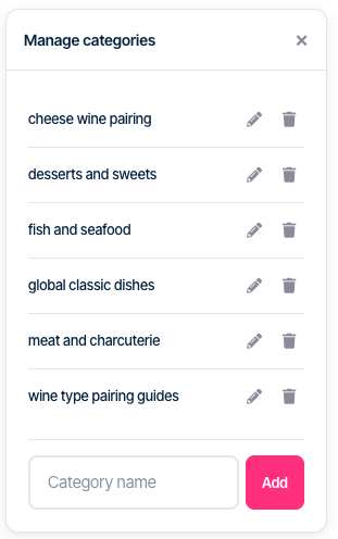 13. Rename or delete existing categories, or add new ones using the input at the bottom.